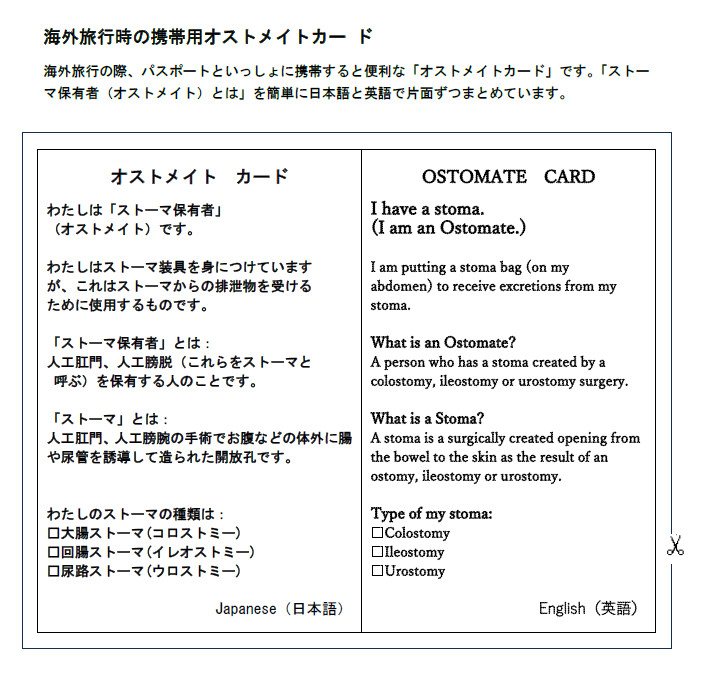 海外旅行時の携帯用オストメイトカー ド